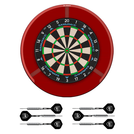 Mission Samurai 3 x Arsenal Dartboard Set - Dartboard, Surround, Torus 270 Licht & 2 Sets Messing Darts