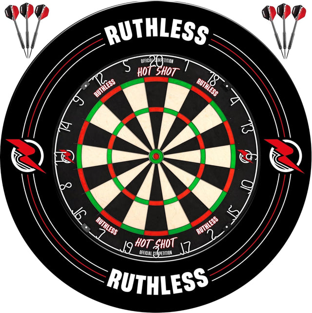 Die Ruthless Darts-Kollektion enthält auch alles, was du für ein Darts-Setup zu Hause brauchst. Entfessle deinen animalischen Instinkt mit unserer Auswahl an Ruthless Dartscheiben! Dieses Sortiment umfasst sowohl traditionelle Dartboards für Steel-Tip-Darts als auch elektronische Dartboards, wobei das Ruthless R500 Electronic Dartboard Set mit vier Sets Soft-Tip-Darts ein Bestseller ist.